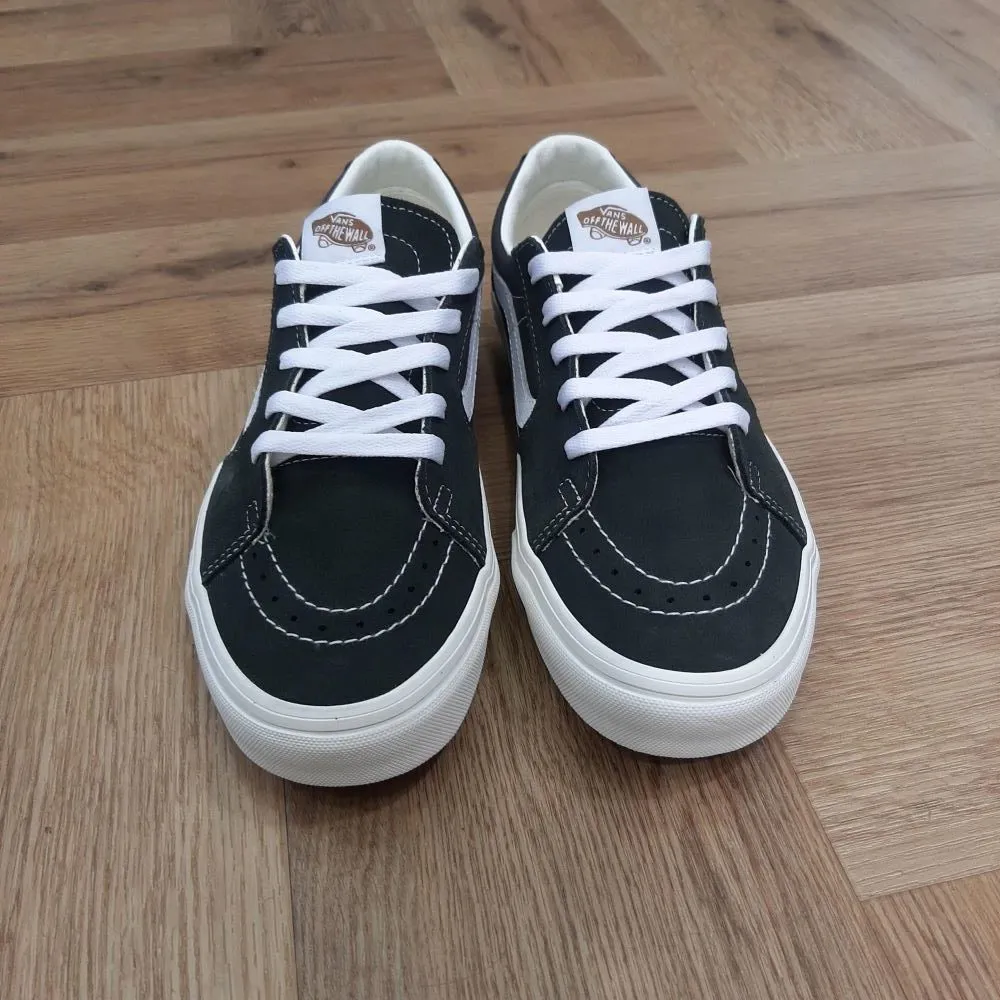- Modèle Vans SK8 low Black Ink . Cette chaussure basse est tout aussi innovante dans son style que son homologue plus grande, changeant constamment la donne tout en restant fidèle à ses racines classiques. Et maintenant, ils ont ajouté un nouvel élément Off The Wall : les tiges en daim et en textile sont doubles, vous pouvez donc retirer le matériau pour créer votre propre design. Il est temps de faire preuve de créativité avec vos nouvelles chaussures.