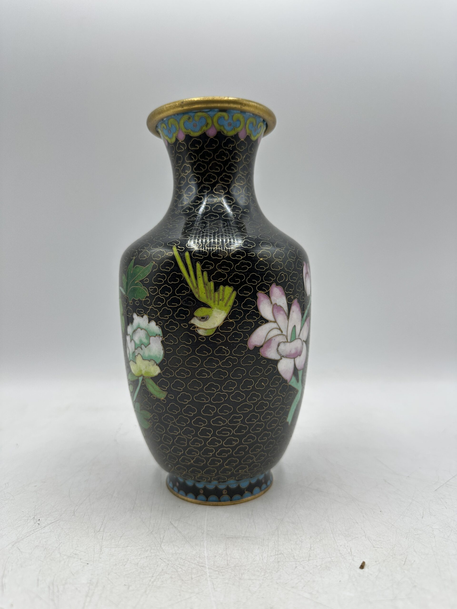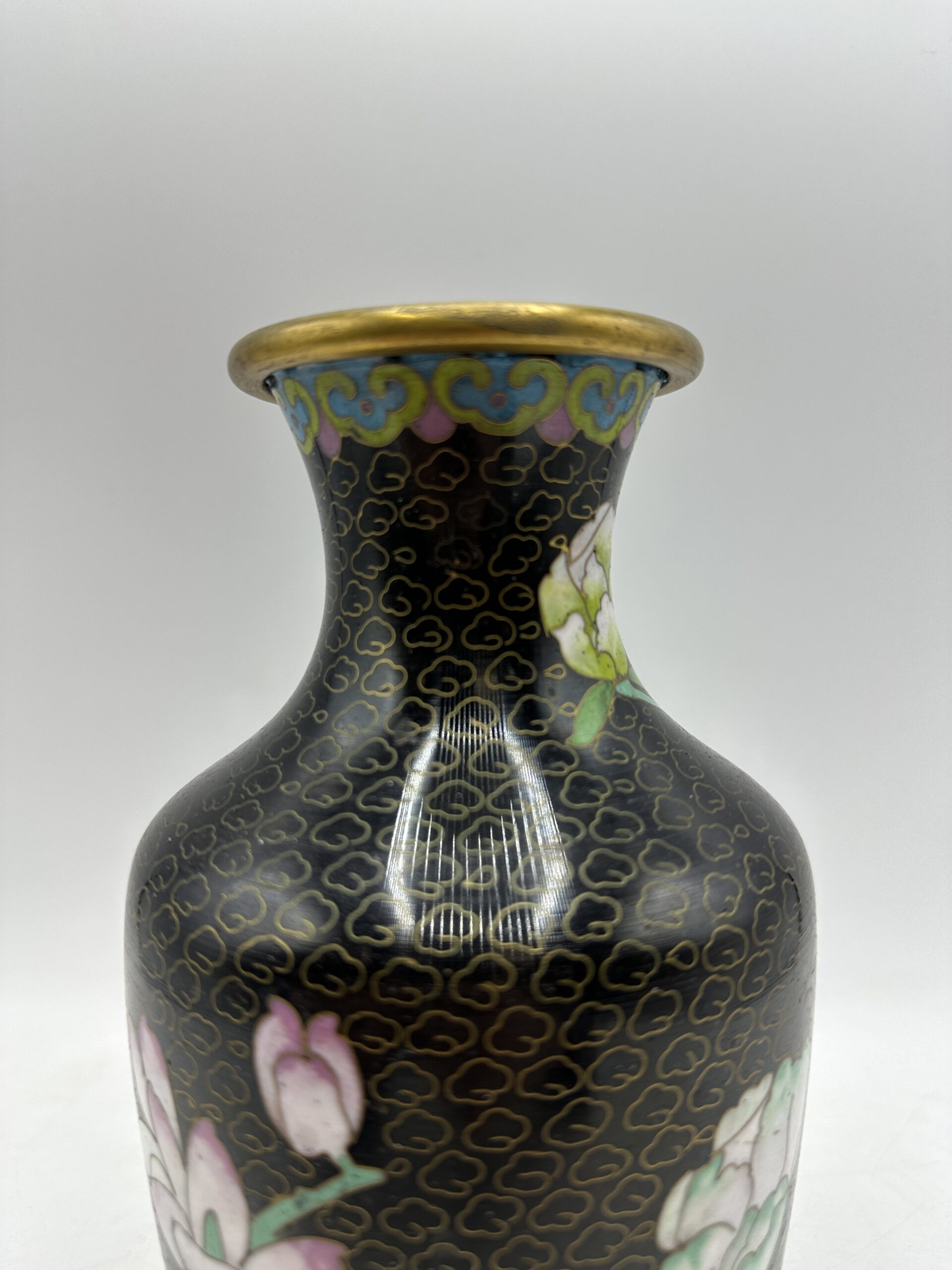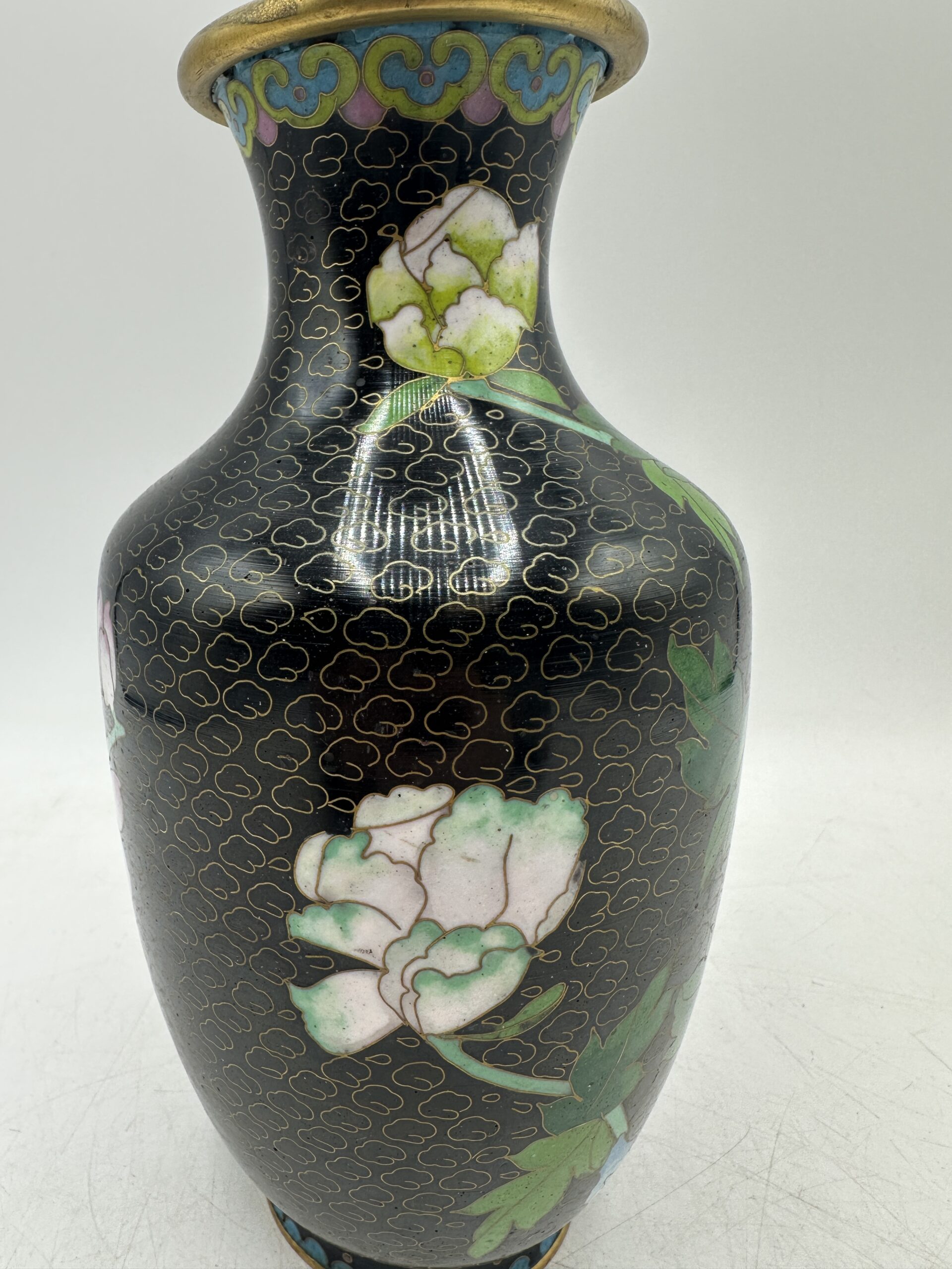 Petite pépite vintage pour apporter une touche asiatique à votre intérieur. Vase cloisonné chinois décor fleuri.