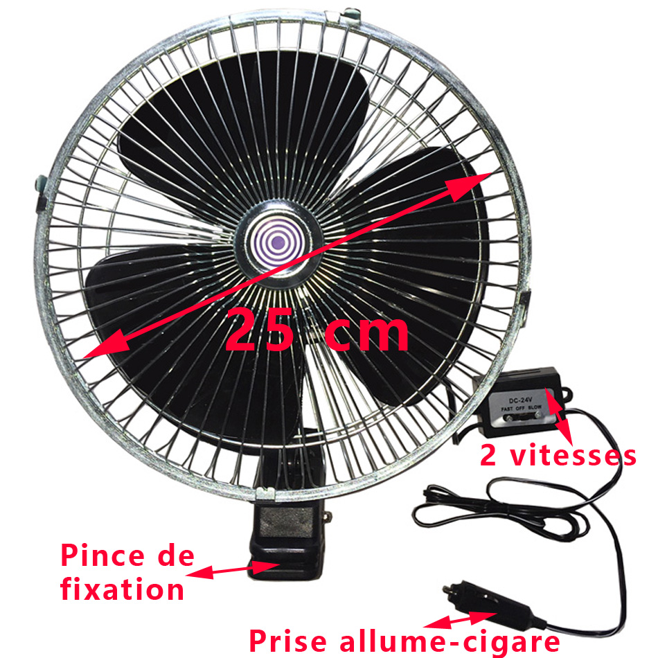 - Ventilateur (10”) oscillant à pince avec 2 vitesses