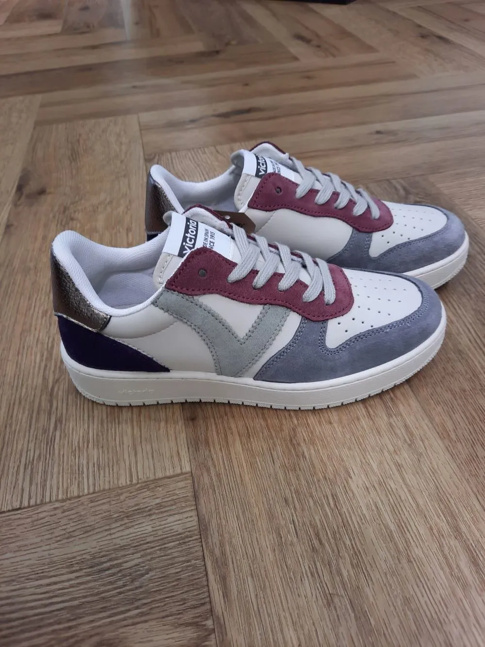 Les baskets pour femme Victoria Madrid Lavande sont fabriquées en Espagne. Leur matière effet cuir brun est assorti à la semelle. Pièces en cuir fendu multicolore et détail métallisé en bronze sur l’arrière. V rétro sur le côté et fermeture à lacets colorés. Empeigne perforée pour évacuer la transpiration. Semelle bicolore de 3 cm fabriquée à partir d’huiles végétales plutôt que minérales afin de réduire l’impact sur l’environnement.