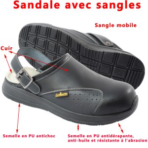 Sandale en cuir noir avec bride basculante